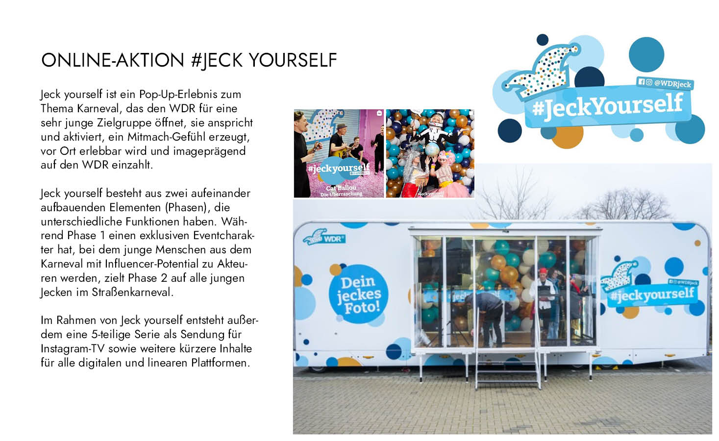 Karneval ist eines der größten Events im WDR: Mit der Übertragung von 97 Karnevalssendungen leistet der WDR den größten Anteil aller Landesrundfunkanstalten; viele davon in Eigenproduktion. Darüber hinaus werden die jecken Tage im Radio und online begleitet und intern groß gefeiert. Kurz: Karneval findet in nahezu alles Bereichen des WDR statt. Bis zur Session 17/18 gab es kein einheitliches Erscheinungsbild. Jede Veranstaltung und jede Maßnahme sah unterschiedlich aus; zwar mit Liebe zum Detail, aber ohne Wiedererkennungswert.